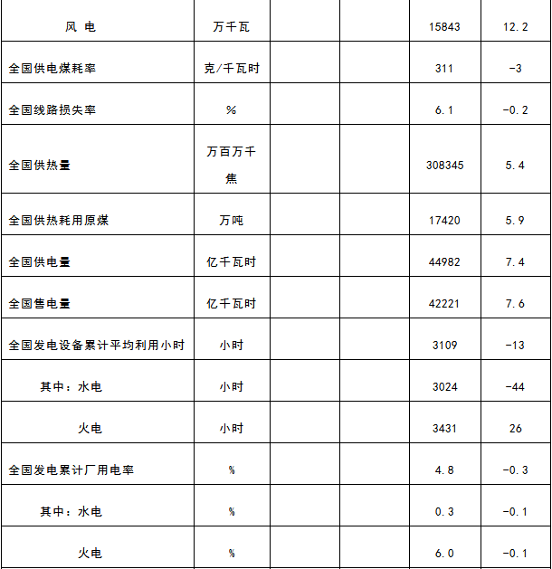 11月22日,國家能源局發布1-10月份全國電力工業統計數據,具體情況如下: