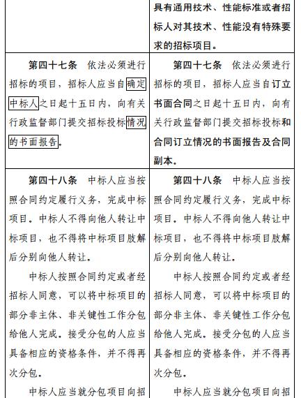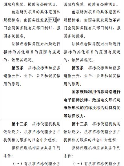《中華人民共和國招標投標法實施條例》修改前后對照表