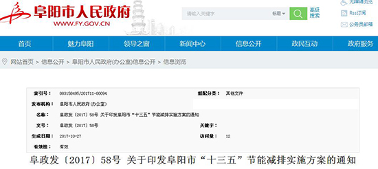 現將《阜陽市“十三五”節能減排實施方案》印發給你們,請認真組織實施。