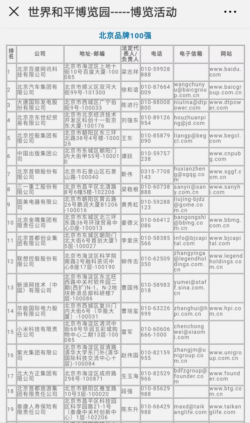 近日,世界和平博覽園公布華北東北各省市百?gòu)?qiáng)企業(yè)。(拉到文末,點(diǎn)擊閱讀原文可詳細(xì)查看華北東北各省市名單)