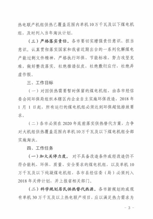 ??為進(jìn)一步落實省政府辦公廳《關(guān)于印發(fā)山西省2017-2018年秋冬季大氣污染綜合治理攻堅行動方案的通知》(晉政辦發(fā)〔2017〕123號)精神,推進(jìn)電力行業(yè)清潔高效生產(chǎn),解決我省電力行業(yè)一些落后產(chǎn)能長期存在的問題,特制定《電力行業(yè)清潔高效生產(chǎn)工作方案》,現(xiàn)印發(fā)你們,請認(rèn)真組織落實,抓好整改實施。