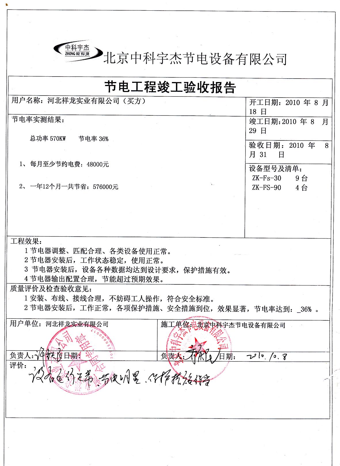 安裝調(diào)試驗收,節(jié)能效率達到36%,投資回報期一年半,按質(zhì)保十年計算,此項節(jié)能工程能為祥龍實業(yè)帶來570萬以上人民幣的直接效益。