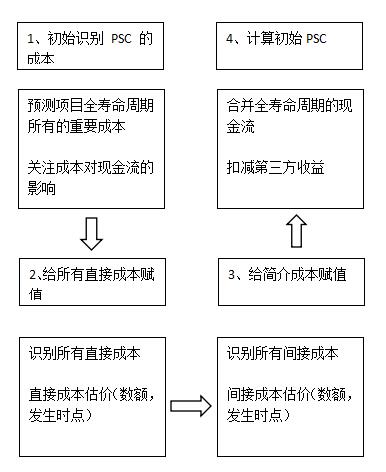 初始PSC代表了傳統(tǒng)采購模式下政府生產(chǎn)和交付參考項目的基本成本。初始PSC的計算是一個復(fù)雜而嚴謹?shù)倪^程,需要對所成本進行界定和分類,預(yù)計可能發(fā)生的時間和數(shù)額,再進行全面的整理和歸納,最后實現(xiàn)凈現(xiàn)值的計算。