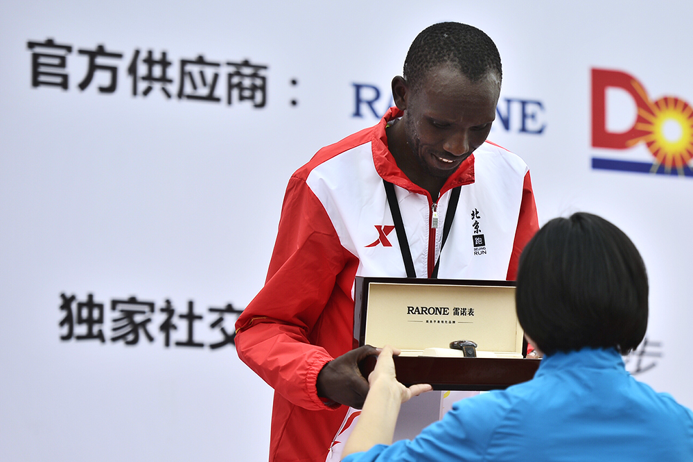 值得一提的是, 81歲高齡的跑友湯伯成今年繼續(xù)和年輕人一起從天安門廣場(chǎng)起跑,體育賽事的魅力不言而喻。比賽結(jié)束,來自肯尼亞的Philip Kimaiyo以1時(shí)11分22秒的成績獲得北京半程馬拉松男子組冠軍,中國選手沈斌、代光臣分別以1小時(shí)12分33秒和1小時(shí)12分38秒獲得男子組亞軍、季軍。
