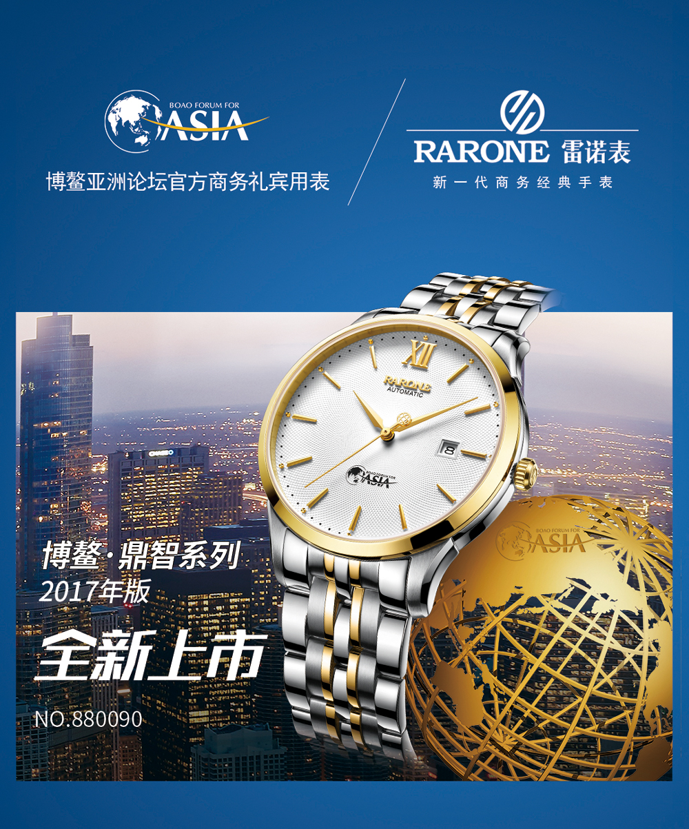 2017年3月23日-26日,博鰲亞洲論壇2017年會如期在海南博鰲鎮(zhèn)舉行,來自全球各國政府、工商界和學(xué)術(shù)界的領(lǐng)袖人物進行為期四天的高端對話,通過博鰲亞洲論壇年會為更具包容性的全球化出謀劃策。今年是雷諾表攜手博鰲論壇,成為博鰲亞洲論壇官方商務(wù)禮賓用表的第八年,八年之交,共勉共進!雷諾表持續(xù)以博鰲·鼎智系列商務(wù)腕表見證商界精英馳騁博鰲的風(fēng)采。