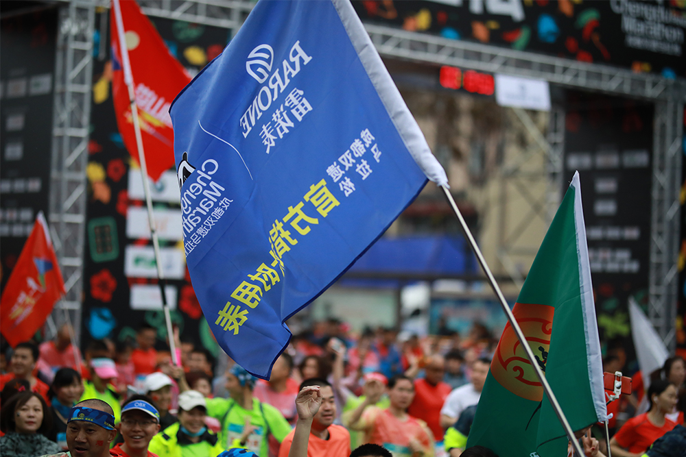 2018年3月18日,一年一度的成都雙遺馬拉松在都江堰隆重舉行。來自世界29個國家34個省市的3萬多名參賽選手齊聚馬拉松賽道起點。雷諾表作為賽事官方指定計時用表,為比賽事精準計時。在起跑倒計時5分鐘、3分鐘、1分鐘后鳴槍開跑,選手們激烈追逐、奔騰如流,場面十分激烈。