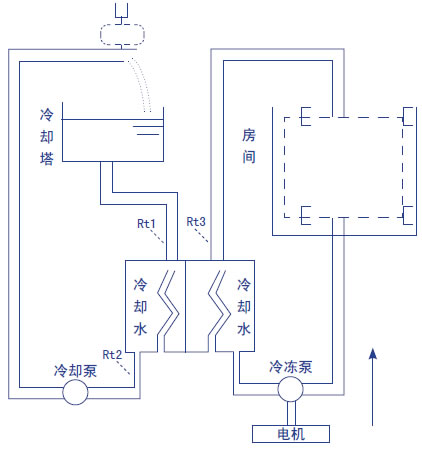 中央空調“外部熱交換”由兩個循環水系統組成